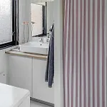 La 3 Bedroom Stunning Home In Hesselager dispone de un cuarto de baño con una ducha y una lavadora.